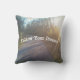 Ce coussin décoratif en tissu extérieur a une photo d'un chemin pavé bordé d'arbres serpentant à travers les bois avec des rayons du soleil qui brillent d'en haut. Customisez le texte Suivez vos rêves avec le modèle.