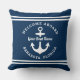 Coussin Nautical Navy Blue Welcome Aboard Nom du bateau An