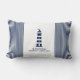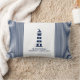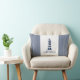 Coussin nautique rayé bleu et blanc avec phare et texte personnalisable. Bandes nautiques à l'arrière. Pour tous les marins et tous ceux qui aiment l'océan, la voile et le style de vie nautique.