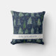 "Navy Blue Woodland Forest Newing Baby Birth Stats Jetez de l'oreiller." Moderne, neige des arbres de forêt pour la chambre de nurserie de votre bébé garçon. Son nom et son état de naissance (ou son message) sont facilement personnalisés. Un arrière - plan bleu marine peut être changé. Créée par Audrey Jeanne Roberts, artiste et designer de renommée internationale, copyright.