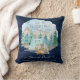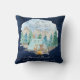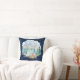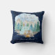 "Navy Camping Adventure Forest Baby Boy Birth Stats Lance Pillow." Les arrière - plans en bois foncé de la marine avec des bois aquarellisés, des animaux forestiers d'une chouette, des cerfs, des ours, des ratons laveurs et des haies campent dans les montagnes. Le message, "Laissons l'aventure commencer" en typographie grise et texturée, est combiné avec le nom, la date, l'heure, le poids et la longueur de votre bébé personnalisé. Art peint en aquarelle par Audrey Jeanne Roberts, artiste et designer de renommée internationale, copyright