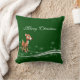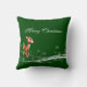 Cute Rudolf le renne rouge nez sur un arrière - plan vert festif avec un fond enneigé. Un design de Noël sympa et amusant pour vos oreillers de Noël.
