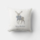 Ajoutez un oreiller de Noël tendance et élégant à votre décor de maison. Dispose d'un design de rennes chinoiserie bleu français avec coquette arc et texte "Joyeux Noël" modifiable que vous pouvez ajuster à l'accueil de votre choix.