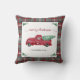 "Camion Rouge Arbre De La Ferme Grisée De Noël, Lance L'Oreiller À La Maison Décor." Coussin de nom de famille personnalisé, décoration à la maison. Christmas Plaid in grey, red, black and white est combiné à une jolie aquarelle de l'artiste de renommée internationale Audrey Jeanne Roberts, copyright.