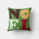 Ce coussin moderne du milieu du siècle présente le mot de Noël NOEL dans une amusante typographie rétro. Un joli ornement des années 1960 est en faveur du "O". Les lettres sont dans une palette de couleurs chic rétro avec du vert, de l'or et du rouge.