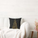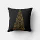 Un élégant coussin de Noël noir et or, avec un sapin de Noël doré composé de flocons de neige de Noël dorés sur un arrière - plan noir pour ajouter une touche contemporaine et élégante à votre décor de vacances pour Noël.