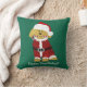 Joli Noël personnalisé Goldendoodle Père Noël tenant le sucre de canne dans sa bouche. Coussin de vacances amusant pour les amateurs de doodle doré et les amoureux de les chiens! © EMR Designs.