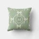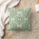 Oreiller décoratif Nœuds Coquette Gingham Monogramme Crème Vert Sauge pour un look moderne et épuré. Élégant et chic style campagnard dans ce motif unique de nœuds couleur crème et de lignes à motifs en diamant à l'aquarelle. Changez le monogramme pour l'initiale de votre choix.