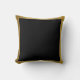 Un oreiller à jetons noirs carré simpliste avec une bordure d'or atmosphérique.
