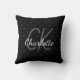 Coussin Noir blanc gris monogramme nom script lancer oreil
