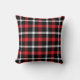 Coussin en plaid noir et rouge, parfait pour un décor de vacances.