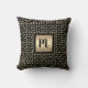 Coussin Noir feuille d'or motif script monogramme moderne