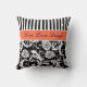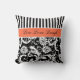 Ces damassé florale orange, noire, et blanche chic et motif rayé 20" x20" coussin a le texte customizeable qui indique "vivant, rire d'amour" là-dessus, mais vous pouvez le customiser cependant que vous voulez. Si vous avez n'importe quelles demandes, envoyez svp niteowlstudio@gmail.com.