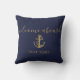 Coussin Nom de bateau nautique Bleu marine Or Bienvenue à