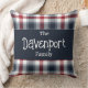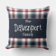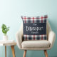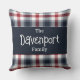 Un oreiller moderne à jetons rouge blanc et bleu écossais avec un nom de famille personnalisable pour compléter votre décor de ferme. Les couleurs rouge et bleu foncé rendront chaque coin cosy et chaleureux.