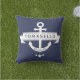 Coussin Nom de famille d'ancre nautique Date Bleu marine R