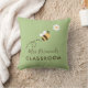 Coussin de lancer pour les enseignants en classe avec un simple script d'abeille et une typographie moderne coussin vert poussiéreux.
