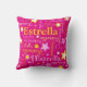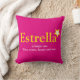 Un arrière - plan rose graphique gras avec étoiles graphiques et nom personnalisé en lettres texte et nom signifiant coussin de coussin d'impression coloré. Il lit actuellement Estrella ou peut être personnalisé avec votre nom court et nom signification ou ce que vous nom signifie pour vous. Motif original et nom signifiant recherche et design par Sarah Trett pour www.mylittleeden.com
