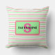 Coussin Nom du monogramme Bandes géométriques rose vert bl
