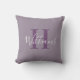 Coussin Nom du monogramme violet profond Typographie du sc