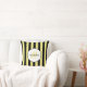 Dites bonjour à l'été avec ce carré jetez l'oreiller dans un motif à rayures verticales noir et jaune-vert à la mode comme celui d'un scarabée de concombre. Personnalisez en ajoutant votre nom et votre initiale monogrammée. Il fait partie de la série Motif de bugs d'été conçue par la boutique Oh so Girly.