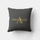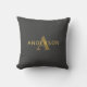 Coussin Nom et monogramme élégant | Or et gris foncé