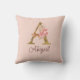 Coussin Nom personnalisé Blush Rose Gold Lettre A