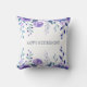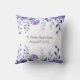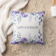 Élégant coussin "Bonne retraite" avec le nom de l'employé à la retraite sur le dos, ainsi que le mois et l'année de sa retraite. La coussin est décorée d'un élégant cadre fleuri de fleurs violettes violettes et de feuilles bleuâtres-verts.