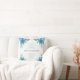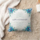 Élégant coussin "Bonne retraite" avec le nom de l'employé à la retraite sur le dos, ainsi que le mois et l'année de sa retraite. La coussin est agrémentée d'un cadre fleuri et élégant, agrémenté de fleurs bleues et de feuilles bleutés-verts.