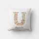 Nom personnalisé & Monogramme floral 'U' Jetez l'oreiller.