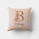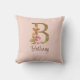 Coussin Nom personnalisé Or Feuille Rose Blush Lettre B