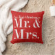 Coussin de Noël rouge et blanc pour premier Noël du ménage marié. "M. et Mme"