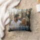 Coussin de photo avec 'notre premier noël' en texte d'écriture élégant sur votre photographie et vos noms choisis. cela ferait un excellent cadeau de noël ou une belle addition à votre décoration de fêtes. Les couleurs peuvent être modifiées pour s'adapter à votre décoration. Fait partie d'une collection.