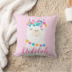 Coussin Nursery à monogramme de lama à écriture rose