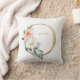 Un oreiller monogramme O floral féminin et élégant présentant des illustrations aquarelles de fleurs blanches, de verdure et de monogramme en feuille de faux or. Personnalisez en ajoutant un nom ou une courte phrase. Cet oreiller floral monogramme sera parfait comme cadeau personnalisé.