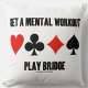 Faites faire aux autres une double prise avec une dose de conseils de pont ciré avec cet oreiller de lancer avec les quatre costumes de carte, ainsi que ce qui suit dire que n'importe quel joueur de pont ou enseignant de pont passionné peut se rapporter à : "Obtenez un entraînement mental Play Bridge".