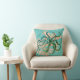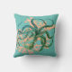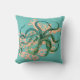 Aqua arrière - plan, branche corail aquarelle et une illustration de pieuvre vintage teintée verte donnent à cet oreiller un look moderne.