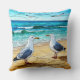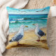 Coussin Oeuvre en verre tendu sur une plage de mouettes