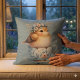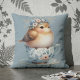 Coussin Oiseau bleu mignon avec couronne florale en Teacup