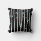 Coussin Oiseaux dans le noir blanc bleu d'arbres de