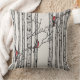Cet oreiller de coton de saison hivernale et de vacances moderne présente des bouleaux dessinés à la main avec des oiseaux cardinaux rouges perchés sur des branches à l'encre noire, contre un élégant arrière - plan en ivoire. Imprimé sur les deux côtés.