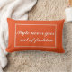 Un beau oreiller dans une couleur orange branchée avec du texte blanc.