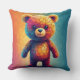 Un ours en mosaique coloré debout dans des teintes chaudes et vibrantes. Jouet en peluche mignon rendu avec une texture de vitrail géométrique, évoquant la nostalgie de l'enfance, la ludicité et le charme fantaisiste pour les enfants et les projets de design.