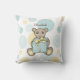 Coussin Ours en peluche bleu pastel jaune personnalisé mig