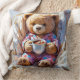 Coussin Ours mignon en pyjama tenant du cacao chaud