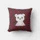 Caricature moderne mignonne ours polaire sur le motif en diamant noir et rouge Jetez l'oreiller. Les diamants rouges ont des formes pyramidales vues d'en haut.