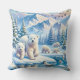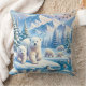 Une scène hivernale paisible avec ours polaires dans un paysage enneigé. Il y a deux ours polaires éminents au premier plan, un assis et un debout, avec plusieurs ours polaires plus petits dans l'arrière - plan. Le cadre comprend des pins enneigés, une chaîne de montagnes sous un ciel crépusculaire, des oiseaux en vol et des canards sur l'eau. La description détaillée de la nature et de la faune crée une atmosphère tranquille.