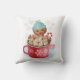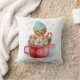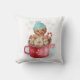 Thème de dessert Whimsical Le coussin de Noël est doté d'un joli biscuit en pain d'épices d'aquarelle dans un casquette d'hiver tricoté, qui profite d'un bain chaud dans une tasse de chocolat chaud avec du sucre de canne, des marshmallows et des accents pastel de flocons de neige. Oeuvre de KL Stock.