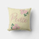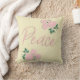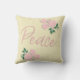 La paix avec des pivoines roses design par Leebrick Prints. Cette couleur arrière - plan coussin (jaune clair s'affiche) est personnalisable.