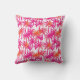 Cette coussin décorative est ornée d'un motif de palmiers rose néon et orange.